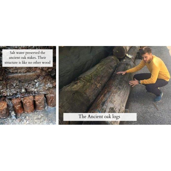 An opportunity came by that we could use the material from the ancient discarded oak stakes used for foundations in Venice because they were not suitable anymore. Over time the ancient oak stakes that were exposed above sea level began to rot because microorganisms need oxygen to multiply. Instead of being thrown away, we found a new way to use them. Over five centuries of seawater made their structure like no other and it is truly a sight to behold once held in hand. The Ancient oak wood is carefully hand oiled for the look, feel and natural smell, with an advanced coating, which is completely natural with 0% VOC (volatile organic compounds)and is the most advanced coating available.